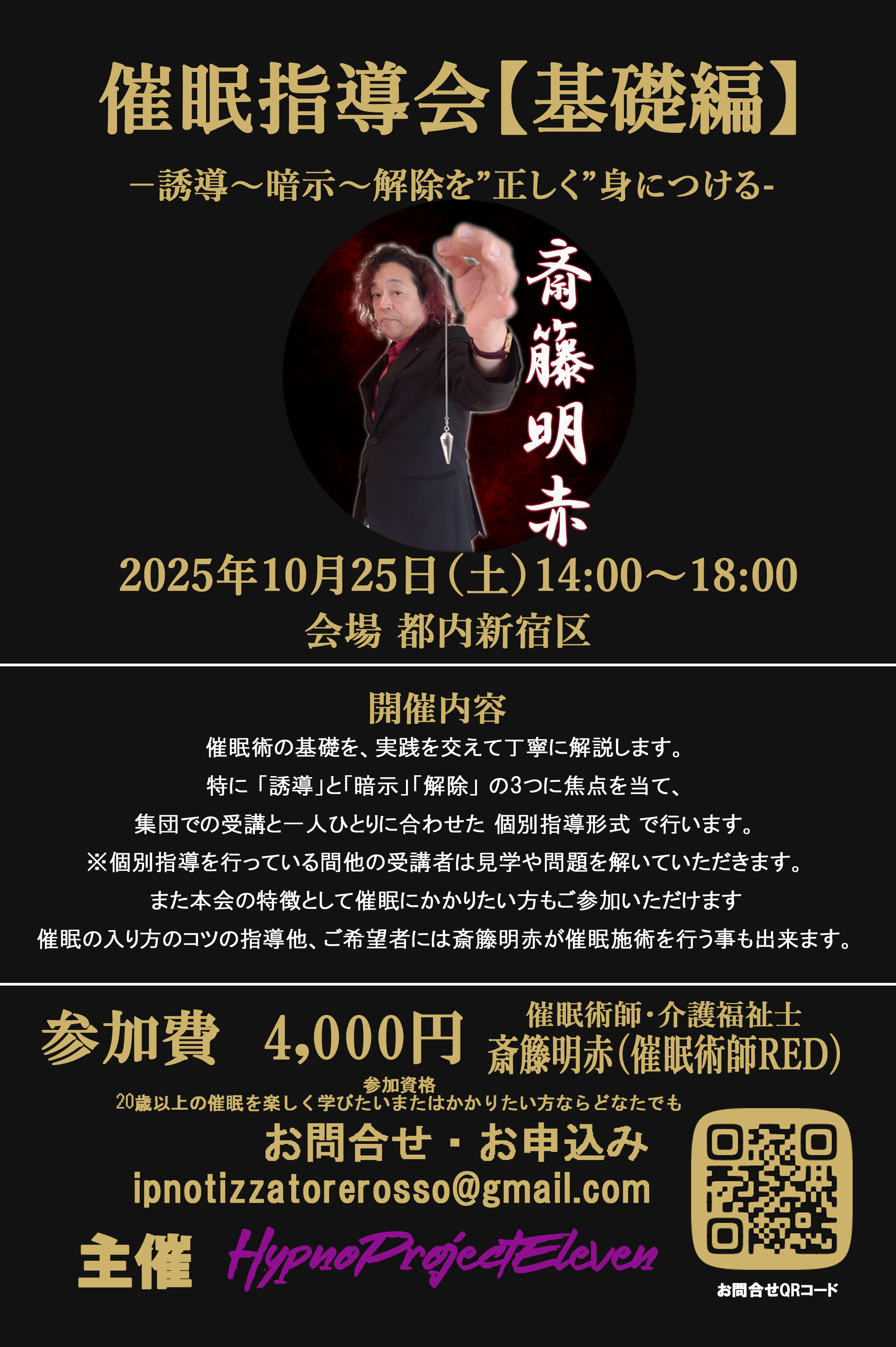 催眠に関する技術的な講義・質問対応は斎籐が担当します。